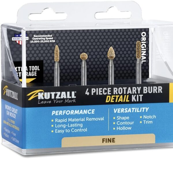 Kutzall 4-Piece Rotary Burr Kit – 1/4″ Shaft, Variety Grit